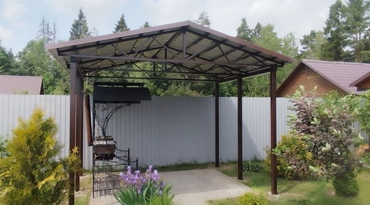 Двускатный навес с профнастилом для зоны с мангалом Арт-724